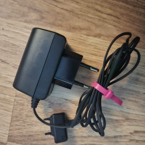 Husker overhodet ikke hvilken mobiltelefon fra Motorola den fulgte med, men kan godt ha vært de klassiske Motorola StarTAC-modellene, Motorola RAZR V3-serien, Motorola Talkabout eller tidlig Timeport-serien siden den er utstyrt med en bred, flat proprietær kontakt merket med "TOP" på ene siden for riktig tilkobling til telefonen.