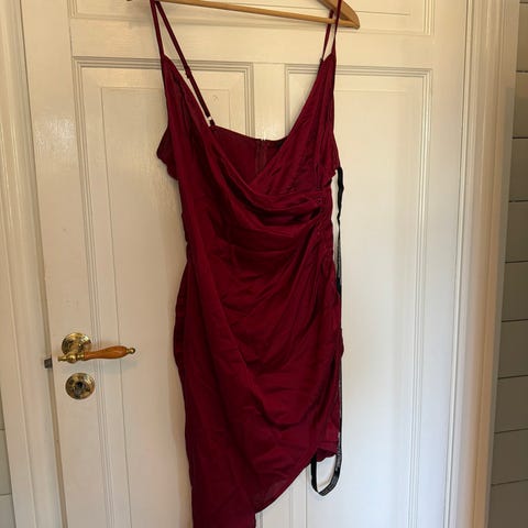 Nydelig kjole fra Prettylittlething, størrelse 42. Nederdelen av kjolen er i omslagsstil og den slengte seg for mye ut, så det er ekstra stoff i samme farge.