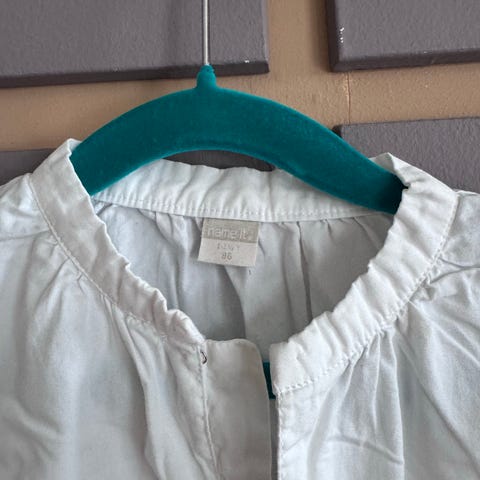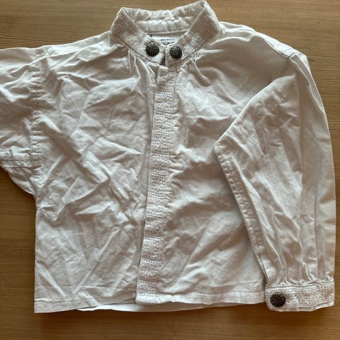 Skjorte til festdrakt eller bunad, str 86 cm. To knapper på ermene for justering av vidde. Ingen flekker og alle knapper er på plass😊