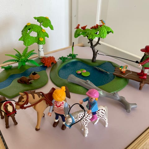 Koselig Playmobil heste- og ponnioppsett selges.