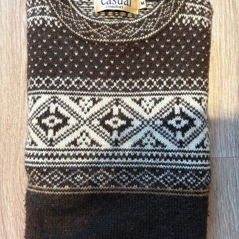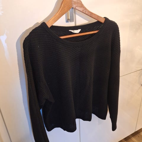 Genser for dame i størrelse M i svart farge. Genseren har dyp V-utringning foran og rett rygg. Materialet er en blanding med alpakkaull, som gir et mykt og lett pusete uttrykk. Passer til hverdagsbruk, og kan kombineres med både bukser og skjørt. Lengde og passform fremstår som normal, med lange ermer og ribbekant nederst.