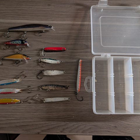 slukbokser med assorterte sluker. Inneholder ulike typer sluk i forskjellige farger og størrelser. Egnet til fiske etter ulike arter, for eksempel i ferskvann eller saltvann avhengig av type sluk. Slukene har monterte treblekroker. Boksene gir oversiktlig oppbevaring og enkel transport av fiskeutstyret.