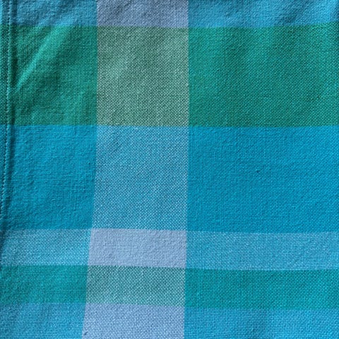 Typisk duk fra 1950-tallet, (ca 80x80 cm). Turkisgrønn og hvit. Selges 59,- (har flere duker i andre annonser, bl.a siste to bilder)