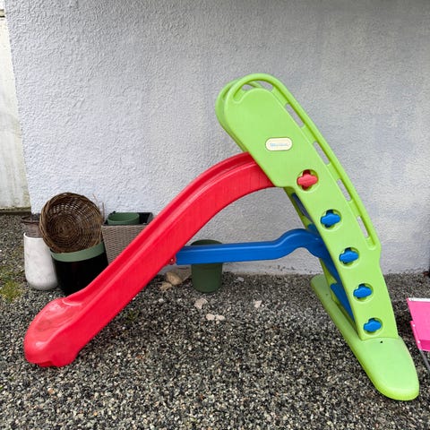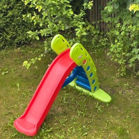 Liten, grønn sklie fra Smoby Life med sklilengde på 150 cm. Smoby sørger for ekstra sikker bruk på sin sklie gjennom formblåst stige med ergonomiske håndtak i rød og anti-skli steg. Sklien kan osgå enkelt legges sammen for oppbevaring. Sklien inkluderer kopling til hageslange for ekstra vannmoro, plastmateriale er av minst 34% resirkulerte matierialer og er UV-behandlet for god holdbarhet med farger som bevares bedre over tid.