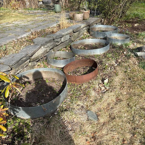 Ukjent merke granbusker i tretønner som utendørsplanter i grønn farge. Består av to granlignende busker plantet i hver sin runde tretønne. Egnet som dekorative uteplanter i hage, gårdsplass eller ved inngangsparti. Tretønnene står på grusunderlag og er tilpasset utendørs bruk. De trenger litt kjærlighet