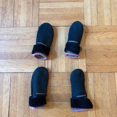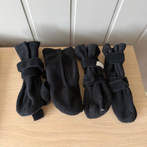 Tassu hundesko i svart farge. Skoene har myk overdel og strukturert såle i syntetisk materiale. De lukkes med justerbare borrelåsremmer rundt poten for bedre passform og feste. Egnet som potebeskyttelse ved tur og aktivitet på ulike underlag. Selges som sett med fire sko.