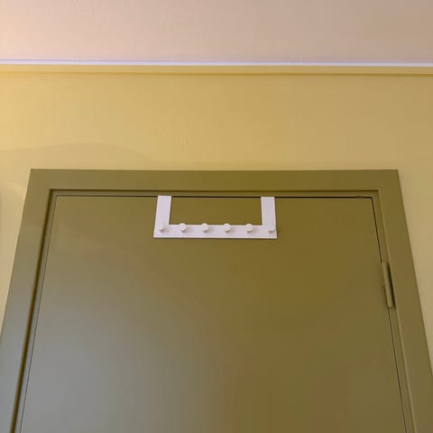 IKEA knaggrekke med dørkrok i metall. Monteres hengende over dørkant, uten behov for boring. Flere knagger på rad gir plass til å henge jakker, vesker, håndklær eller annet. Passer til bruk i gang, soverom eller bad, avhengig av dørbredde og tykkelse. Metallutførelse gir et robust og lettstelt produkt. Har 2 stk, 60 kr pr stk.