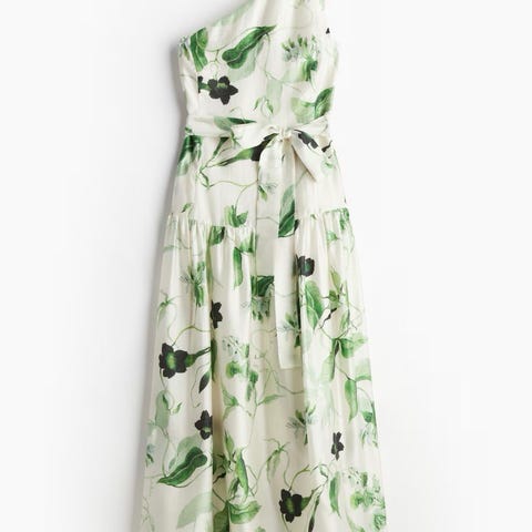 Vakker og elegant kjole selges. Perfekt for brysomme, hageselskapet, 17. mai og andre anledninger du vil være litt ekstra fin. Kjolen hvit med grå blomster, med draperinger som fremhever formene på den beste måten. Modellen har et lett og luftig uttrykk som passer til bruk på varme dager eller til hverdagsbruk i sommerhalvåret.