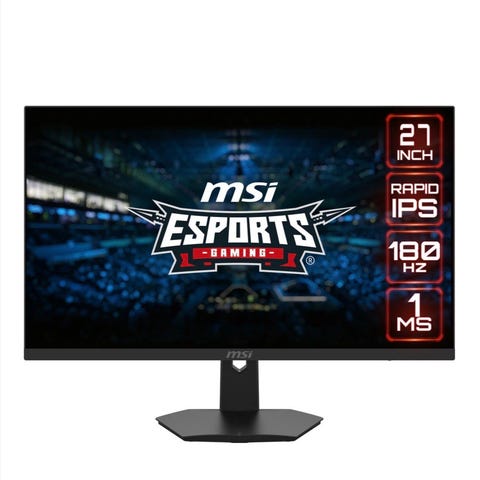 MSI Esports Gaming 27" skjerm med 27 tommers skjermstørrelse. Skjermen har Fast IPS-panel, 165 Hz oppdateringsfrekvens, 1 ms responstid, og støtter NVIDIA G-SYNC. Designet for gaming med fokus på rask respons og god bildekvalitet.