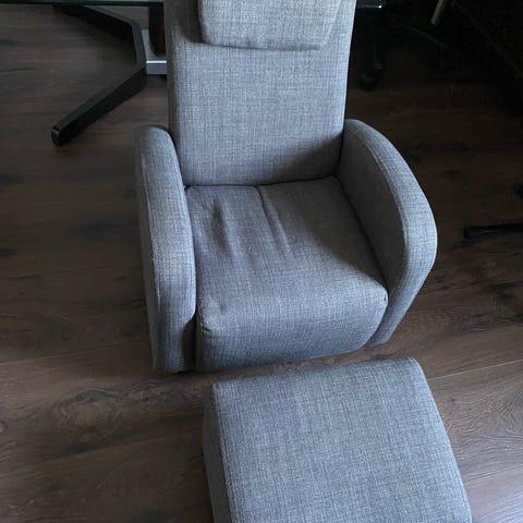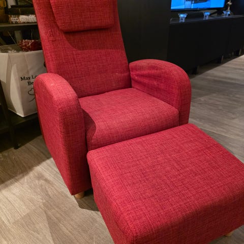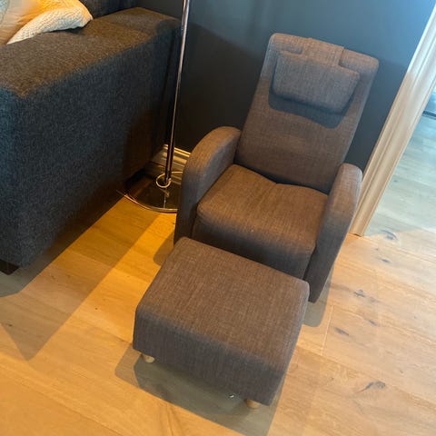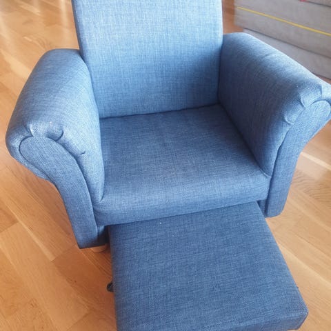Pent brukt lenestol til barn m/pall selges.