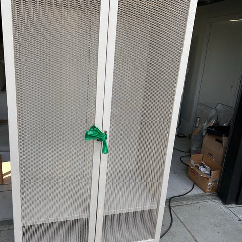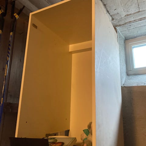 Mulig jeg ikke har heeelt eksakte mål, men det er til gamle IKEA skapstammer som ikke selges lenger. De er grå. Dørene er i frostet glass med karmer som imiterer børstet stål. Ta kontakt hvis du har pent brukte slike.