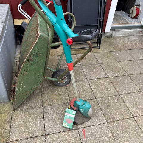 Denne er knapt brukt. Batteridrevet Bosch Isio gress- og busksaks. Hagesaks for klipping av gresskanter og mindre busker. Settet inkludere knivblader for gress og busk, sprøyteenhet, samt lader.