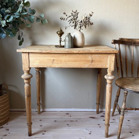 antikk, retro, gammel, bondebord, bondemøbler, furu, sidebord, rustikk, pianokrakk, badekrakk, bord, trestol, stol, taburett,