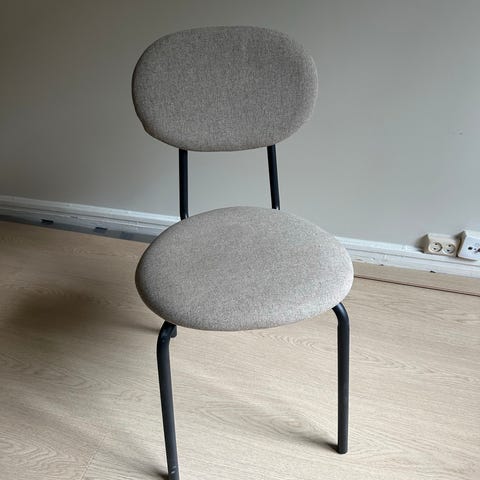 Selger 2 stk. stilige og komfortable spisestoler fra JYSK (modell PURHUS) i grå/svart. Stolene er pent brukt og i veldig god stand, uten skader.