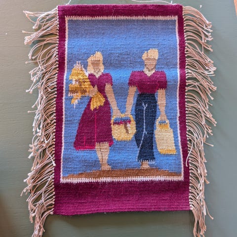 Eldre vev-arbeid i naturfarget ull.