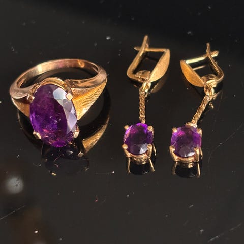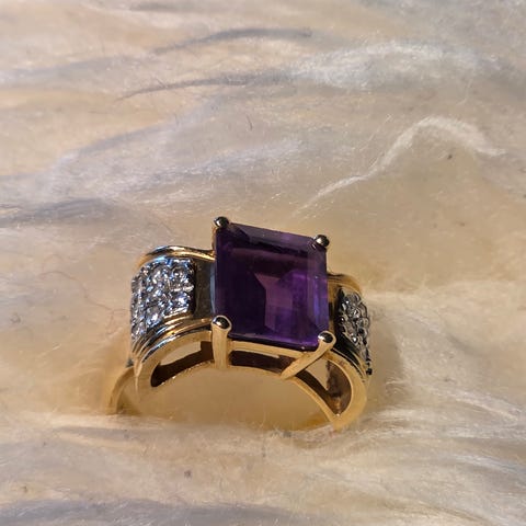 Vintage ring i 18 karat gull med stor ametyst – arvestykke