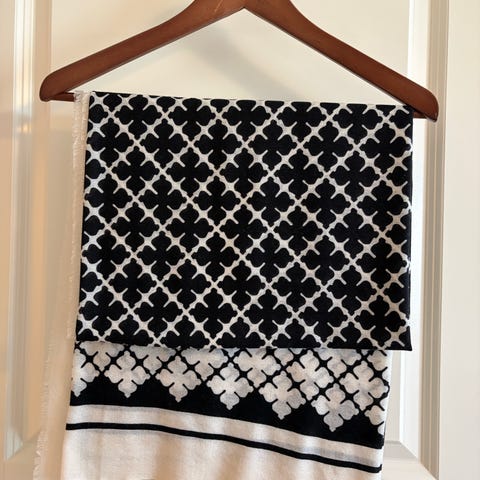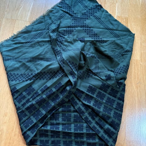Nydelig svart og hvitt skjerf fra Malene Birger. Ull. Knapt brukt. Str ca 150 cmx 145 cm.