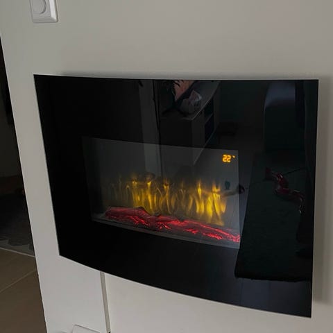Kvadrat Elektrisk peis med glassfront. Front i sort glass med innsyn til kunstig flammeeffekt .Monteres på vegg eller nisje etter produsentens anvisninger. Egnet som stemningsbelysning og tilleggsvarme i oppholdsrom, forutsatt korrekt installasjon og bruk i henhold til bruksanvisning.