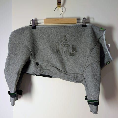Grå dress i ull blanding fra Gresshoppa, borrelås rundt labbene.
