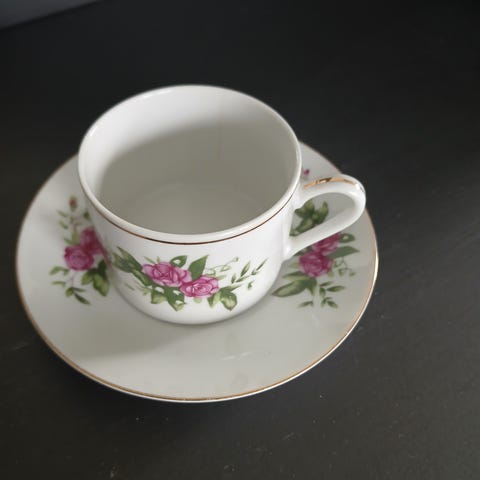 Skål med kopp i rosemønster