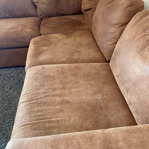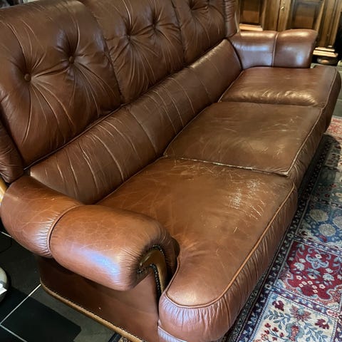 Godt brukt skinnsofa gis bort mot henting