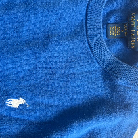 Polo Ralph Lauren genser for gutt i størrelse 152. Genseren er svart og laget av bomull. Den har lange ermer og rund hals. Klassisk Polo Ralph Lauren-logo brodert på brystet. Egner seg til hverdagsbruk og kan brukes alene eller som lag under annen bekledning. Har blitt forliten bare kom med bud selger billig