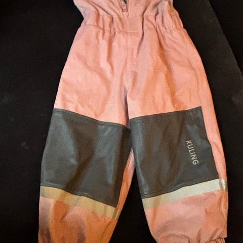 Lindex FIX regnbukse for barn i størrelse 110. Buksen er rosa og laget i polyester. Den har strikk nederst i bena, fotstropper og refleksdetaljer rundt bena for bedre synlighet.