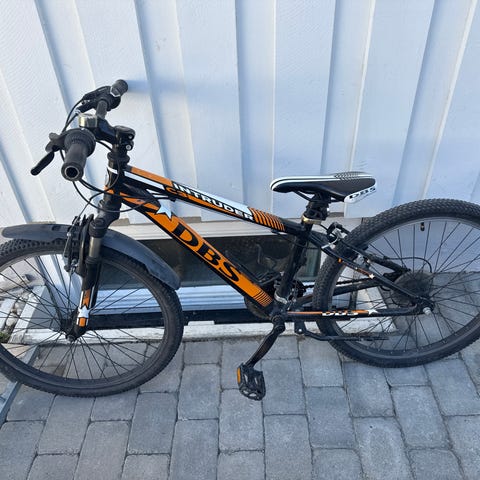 Sykkel er i bra stand bortsett fra slitte ender på holker.