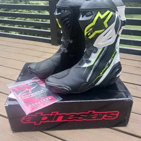 Støvlene er helhøye racing-/sportstøvler med utskiftbare sliders ved tåpartiet og forsterkninger ved ankel, hæl og legg. De har en integrert, uttakbar innersko med snøring for ekstra støtte og passform. Overdelen er i syntetisk materiale med teksturert overflate for bedre grep ved girpedal og fotstøtter.