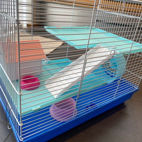 Har to små bur til som kan følge med om ønskelig😊 De kan også kobles sammen med det store buret via rørsystemet😁