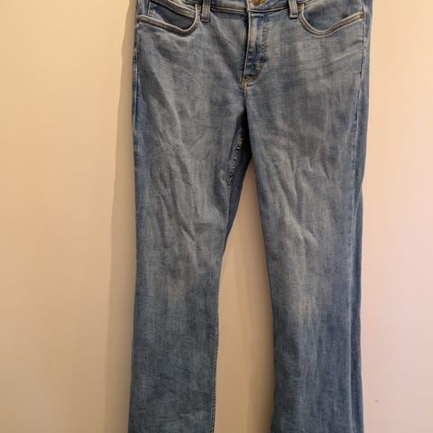 Lee Marion Straight jeans for dame i størrelse 40 med midjemål W31. Buksen er i blå denim av bomull. Modellen er rett (straight) med klassisk 5-lommers design, beltehemper og glidelåsgylf med knapp. Passer til hverdagsbruk og kan kombineres med ulike topper og sko for et enkelt og praktisk antrekk.