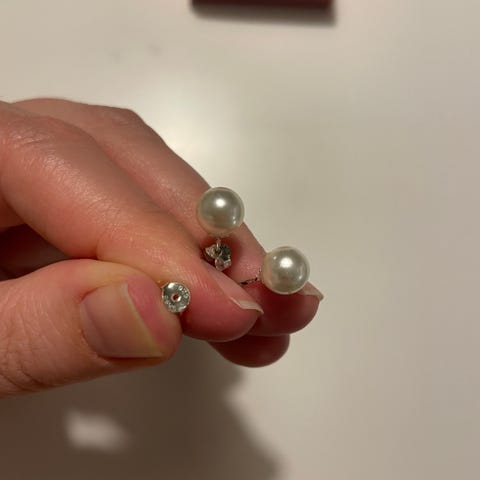 Gullbelagt (18k) ankellenke i 925 sterling silver med seks syntetiske perler. Rundt 28,5 cm langt, med muligheter for å få smykket kortere.