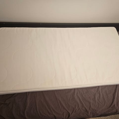 BabyDan madrass Comfort 40x84 cm. Tykkelse 4 cm.Den har vært plassert i en vugge i noen uker, men det har aldri ligget noen på den, og den er dermed helt som ny. Nypris kr. 439.