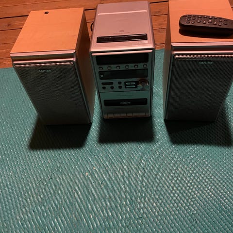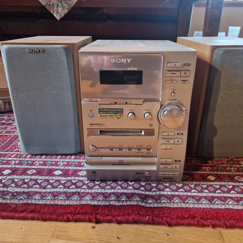Sony stereopakke med kompakt mikrosystem og to matchende høyttalere.
