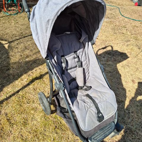 Graco barnevogn i grått tekstil. Vognen har justerbar kalesje, fempunktssele og frontbøyle. Under setet er det en romslig varekurv. Håndtaket har brett med koppholdere. Passer til ett barn og er egnet til hverdagsbruk eller barnehage. Denne vognen har blitt brukt som sove vogn i barnehagen. Kan være litt treig å styre til sidene.