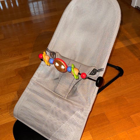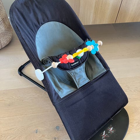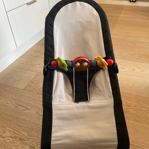 Babybjörn vippestol med avtagbart trekk og lekebøyle. Følger med et ekstra trekk, slitt på siden men har funker helt fint