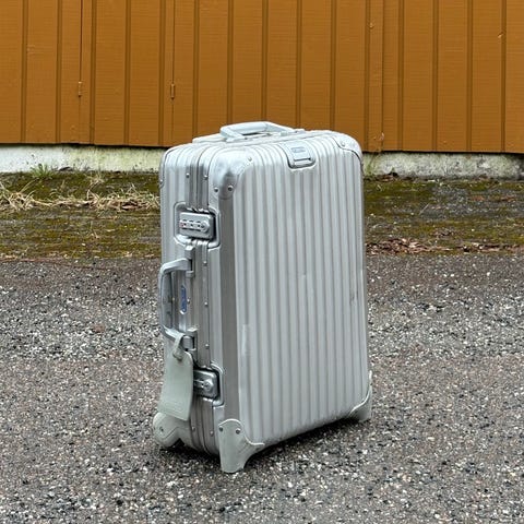 Rimowa koffert i plast for unisex. Kofferten har karakteristisk riflet overflate og sølvfarge. Den er utstyrt med fire hjul for enkel manøvrering, teleskophåndtak samt bærehåndtak på topp og side. Kofferten har integrert kombinasjonslås og metallforsterkede hjørner. Egner seg til reiser der det er behov for en hard koffert med god beskyttelse av innholdet.