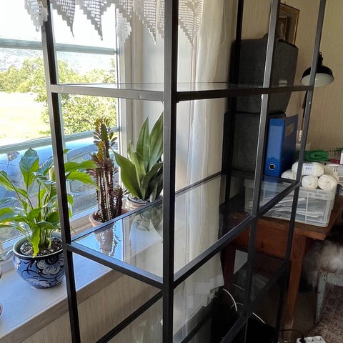 En lett liten hylle i lett metall og glass. Brukt til å oppbevare ting på kjøkken. Ca 1,5år gammel, pent brukt.