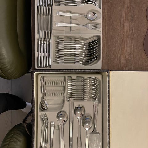 Ubrukt Hardanger Bestikk bestikksett Nina i rustfritt stål. Settet inneholder 18 deler med kniver, gafler, spiseskjeer med dekorert skaft. Leveres i eske som vist på bildene, egnet til daglig bruk eller til dekkede bord ved ulike anledninger.