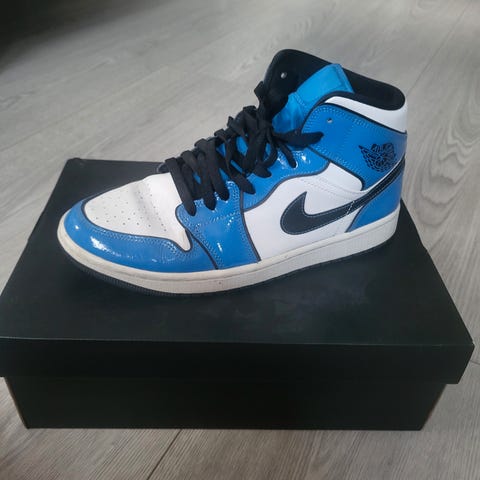 Air Jordan sneakers joggesko i størrelse 43. Skoene har overdel i hovedsakelig svart materiale med gule detaljer og hvitt Jumpman-logo. Snøring foran og polstret hælparti for komfort. Modellen passer til hverdagsbruk og fritid, og er laget som klassiske basketsko-inspirerte joggesko. Fargekombinasjon svart/gul med hvite logodetaljer.