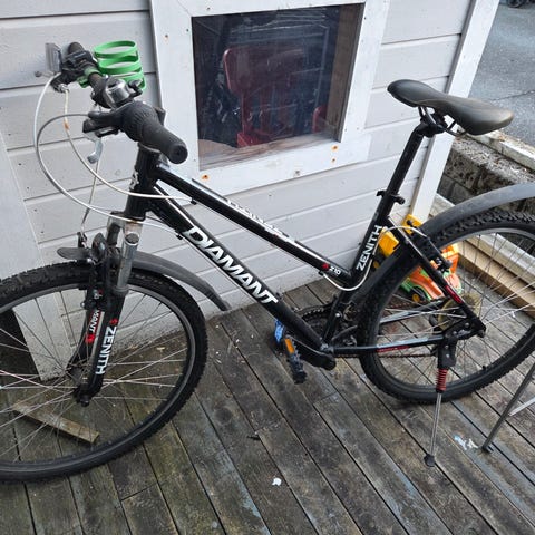 Sykkelen er en gammel pike sykkel som har stått under altan taket og aldri brukt i de siste 5 år. Hvis noen som vil prøve å fikse sykkelen eller vil bruke delene kan det være aktuelt.