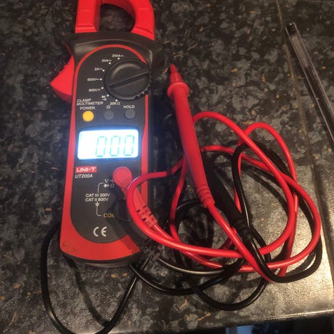 Er nesten som ny ettersom drillen ble ødelagt av slag. Men batteriet var heldig og overlevde nesten uten noen skrammer I mitt eige. Multimeter viser 24.7volt over et 22v rated batteri, noe som betyr at det er lite brukt og god stand