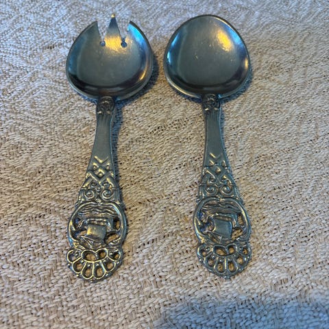 Selges 2 stk. saltkarer tinn vikingskip med saltsje.