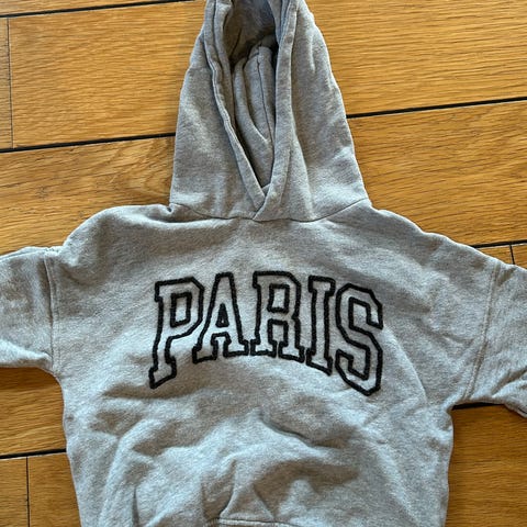 Grå hettejakke/genser med Klatremus fra Hakkebakkeskogen. Pent brukt, ingen spesielle bruksmerker.