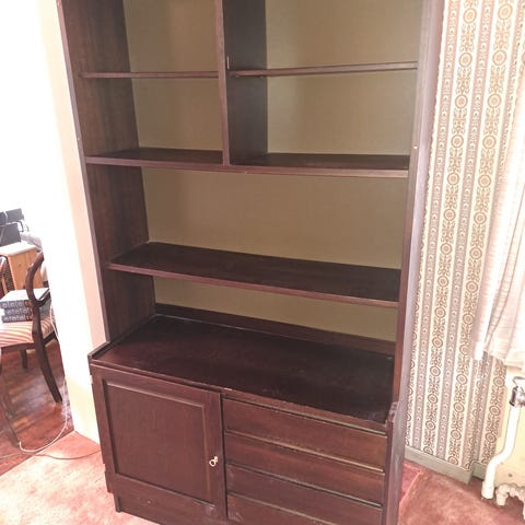 Noe slitasje. I god stand, stødig. Nøkkel til skap.