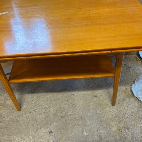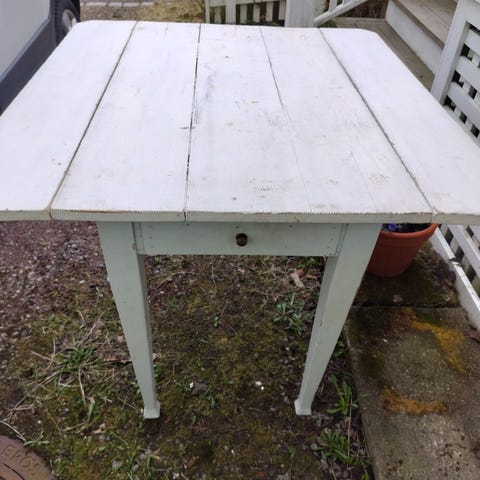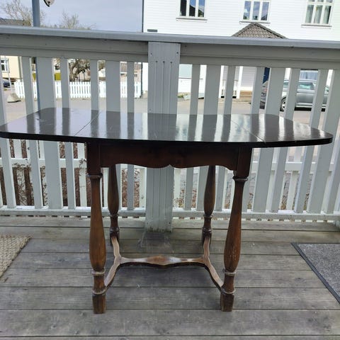 Stilig, gammelt klaffebord. Trenger pussing på overflaten og ny lakk, eller maling.