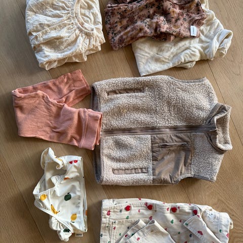 Ullpakke i str 62. Pakken inneholder 2 sett fra reflex, 1 dress fra lindex, 1 dress fra joha (denne er i str 60, se bilder), 1 tykk ulkdress fra nameit med votter og føtter. Ingen hull på klærne. Alt vasket kun med ullvaskemiddel i ullprogram.