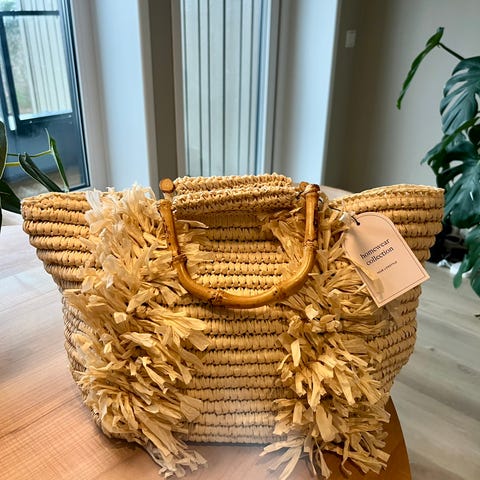 Super fin lin og bomulls veske med broderte palmetre 🌴 har masse plass og er perfekt for sommer, ferie og strand
