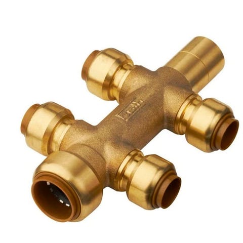 Roth koblingsfordeler i messing. Fordeleren har flere tilkoblingspunkter med klemringskoblinger og en plasthette på én av tilkoblingene. Egnet for rør- og VVS-installasjoner der det er behov for å fordele vann eller annen væske til flere rørstrekk. Utførelse i messing gir robust og korrosjonsbestandig konstruksjon.