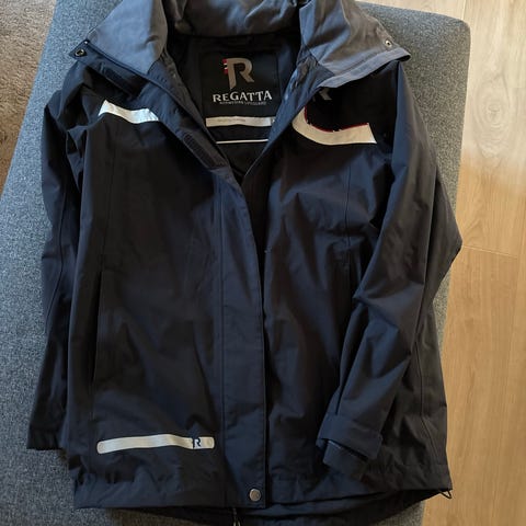 Gill seiljakke smock str. L i rødt, svart og hvitt. Jakken har lange ermer og høy hals med borrelås øverst. Den har elastisk kant nederst og mansjetter ved ermene.